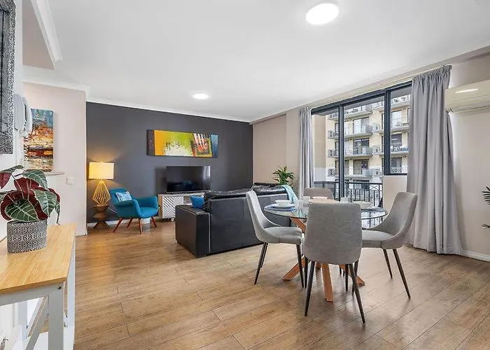 East Perth Escape Wifi Parking Lägenhet ligger i Perths centrum, cirka 25 minuter till fots från Krigsmonumentet i Kings Park. Gästerna kan ta ett dopp i en privat pool för att koppla av efter en lång dag.